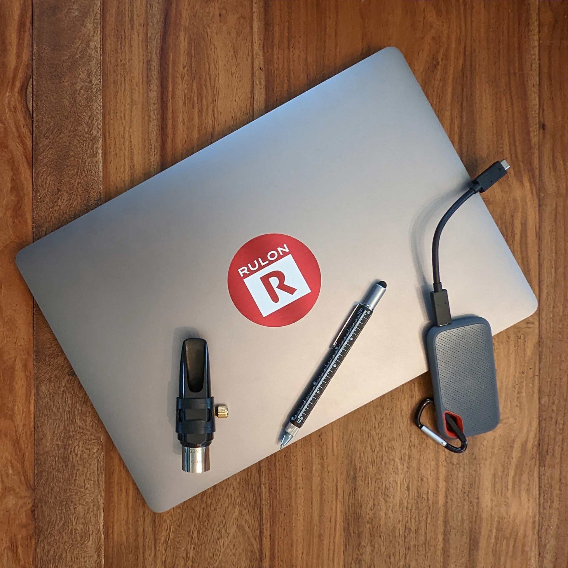 Add a flash of color to your musical instrument case, laptop, or music folder with this metallic red 3" round RULON sticker.