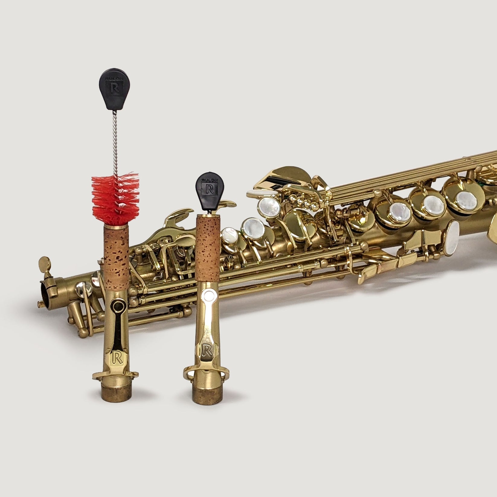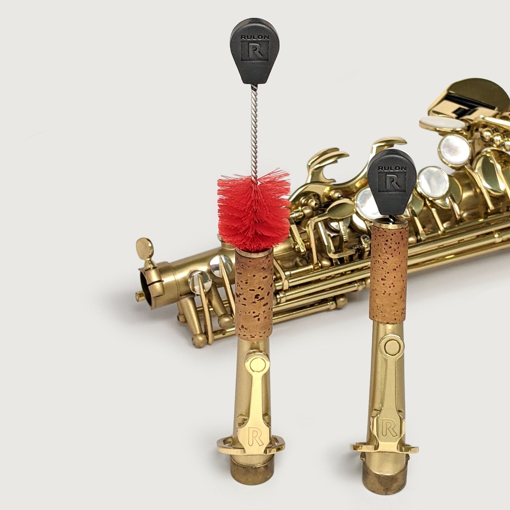 Perfect for delicate cleaning of hard rubber mouthpieces, Rulon Brown designed this mouthpiece cleaning brush with soft bristles and a soft-touch rubber grip handle for easy cleaning of brass or woodwind mouthpieces including trombone, saxophone, tuba, clarinet, and more. The full bristle design flexes to safely clean inside soprano sax necks, trumpet valve casings, brass mouthpieces, or other instrument mouthpieces.